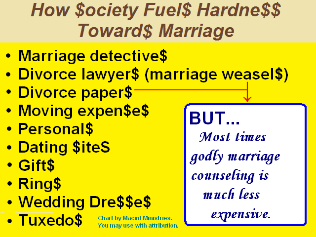 The following image shows why, in part, there is hardness of heart in marriage. Articles pertinent to this chart include . . . To Be Published